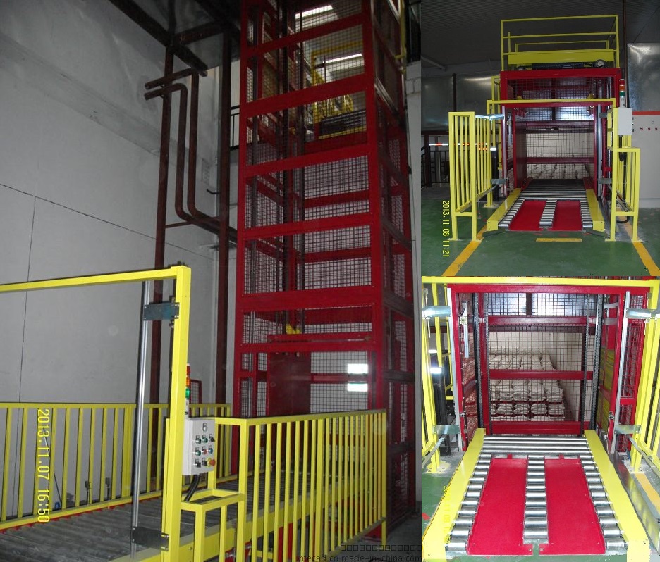 7.升降轎廂的上下行程均可輸送物料,在升降轎廂的一個循環(huán)過程中可使物料同時(shí)雙方向流動;