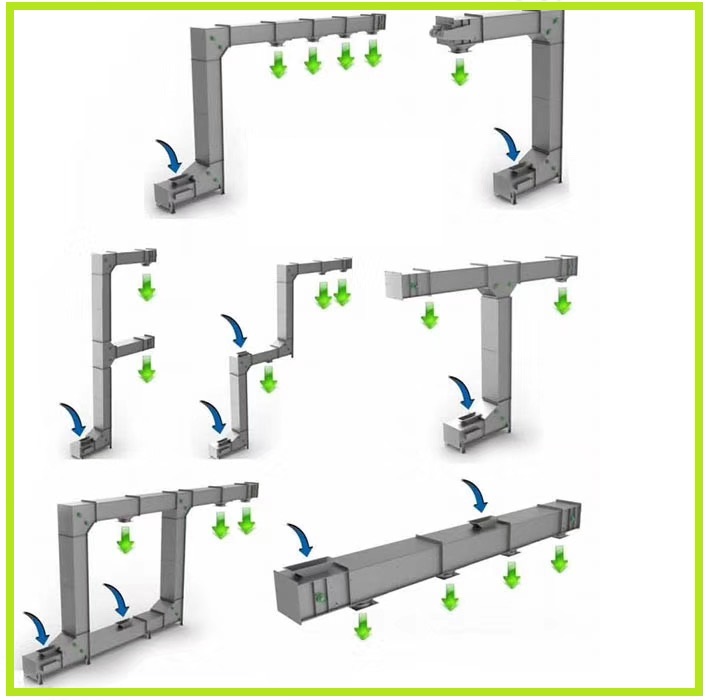 轉(zhuǎn)斗式提升機(jī)又稱為斗提機(jī),鏈斗式提升機(jī),由機(jī)頭、機(jī)尾及豎直段機(jī)筒、傳動(dòng)軸、鏈輪、鏈條、料斗、馬達(dá)、電控幾部分組成,料斗與料斗之間采用無(wú)縫搭接形式,可滿足顆粒、粉末、短條狀、小塊狀物料的連續(xù)式垂直提升輸送,進(jìn)出料口位于設(shè)備的兩側(cè)或同一側(cè),可滿足同一平面的多點(diǎn)進(jìn)料,亦可不同層進(jìn)出料,一層既可以提升到二層,同時(shí)也可以提升到第三層,使得進(jìn)料口及出料口不在同一平面的多點(diǎn)出料問題得到解決;料斗采用了PP塑料材質(zhì),可直接與食品接觸;提升物料與料斗之間相對(duì)靜止,使得物料在提升輸送過(guò)程中不會(huì)產(chǎn)生破損,對(duì)破損率要求嚴(yán)格的種子、有機(jī)大米、堅(jiān)果等物料來(lái)說(shuō),斗式提升機(jī)為較好的選擇;提升高度達(dá)到了40米,提升量≤20立方;我們通過(guò)加大了料斗的容積,使得整個(gè)設(shè)備運(yùn)轉(zhuǎn)的速度始終處于低速運(yùn)轉(zhuǎn)狀態(tài),間接的延長(zhǎng)了提升料斗以及鏈條的使用壽命,減少了易損件的損耗,相比較老款斗式提升機(jī)來(lái)說(shuō)降低了設(shè)備的維護(hù)成本,提升了產(chǎn)量,降低了能耗;