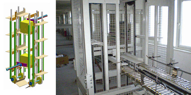 步進(jìn)式垂直提升機(jī)由機(jī)架、提升鏈條、傳動(dòng)軸、伺服電機(jī)等組成,是一種新型的高速提升機(jī);廣泛應(yīng)用于包裝行業(yè)的紙箱、周轉(zhuǎn)箱的樓層間的提升輸送;與托盤(pán)垂直提升機(jī)同樣具有垂直提升機(jī)的占地面積小的特點(diǎn);相比較連續(xù)式垂直提升機(jī)來(lái)說(shuō)提升速度更快,提升量可達(dá)25件/分鐘,由于采用了伺服電機(jī)驅(qū)動(dòng),所以提升精度高,速度快,可以后續(xù)包裝輸送線聯(lián)動(dòng)控制,滿足自動(dòng)化生產(chǎn)的需求